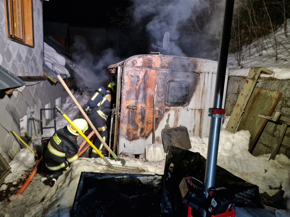 Hotel ve Velké Úpě ohrožoval požár maringotkyP Velka Upa 16 2 2023 3.jpg
