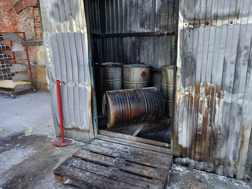 Výbuch sudu v areálu firmy PETER GFK v Kocbeři způsobil požár. Zaměstnanci zasáhli včas a předešli škodám